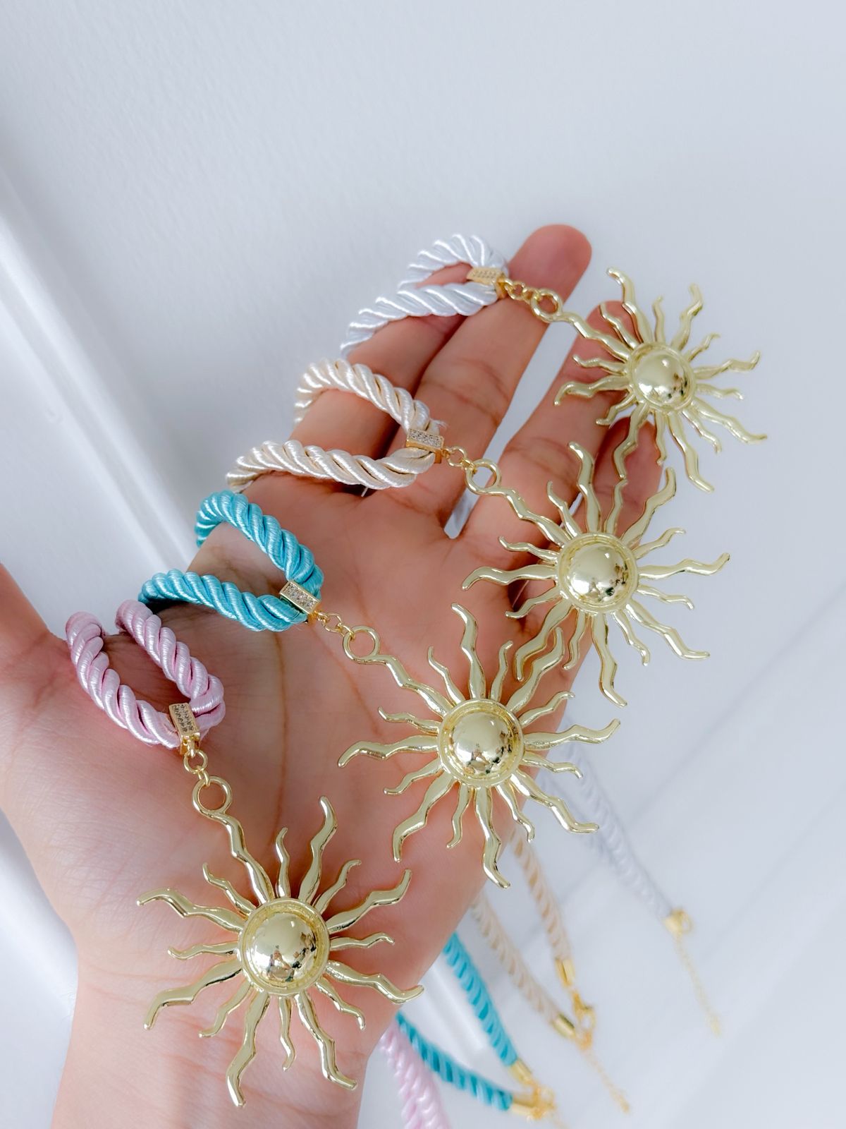 Fabricado en cobre con baño de oro y cordón