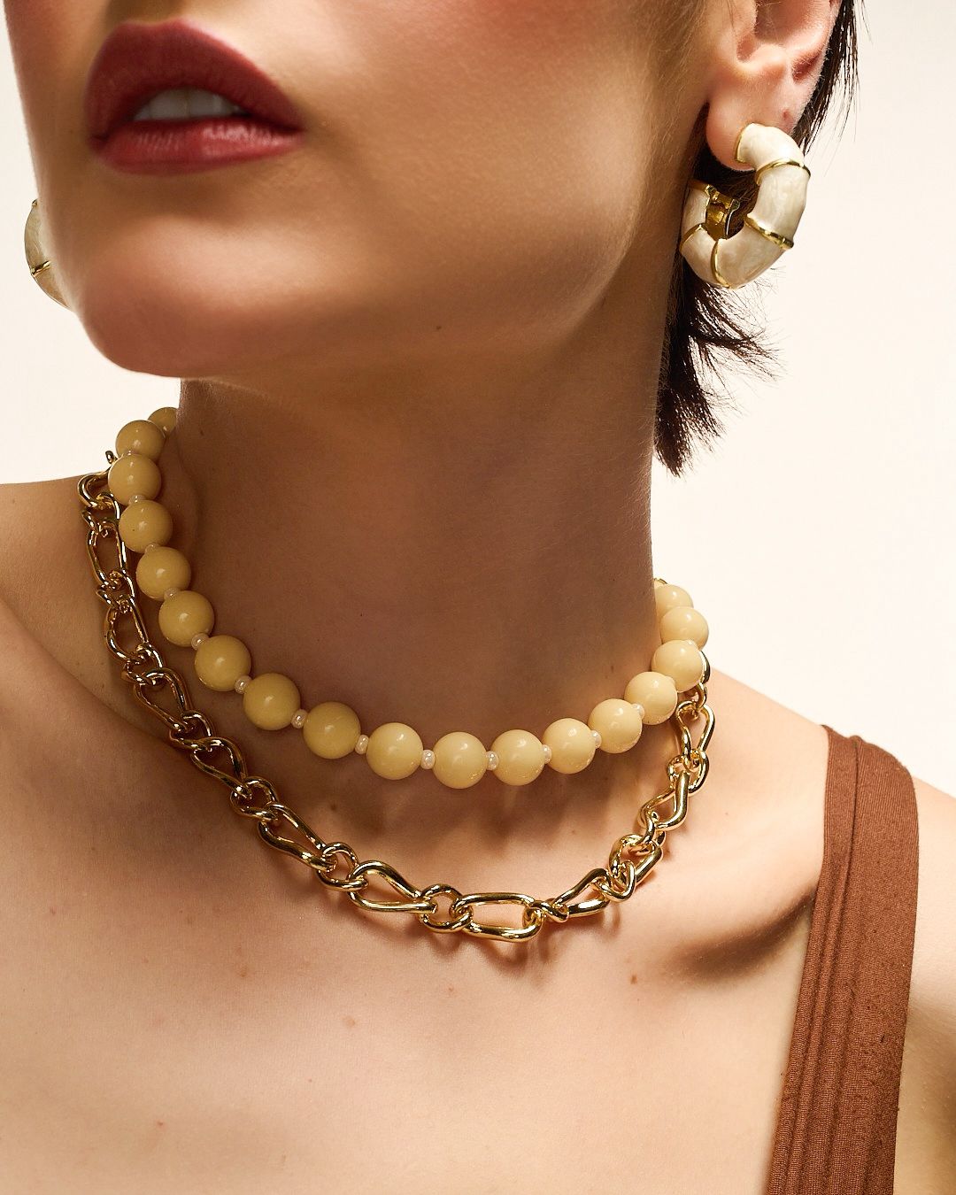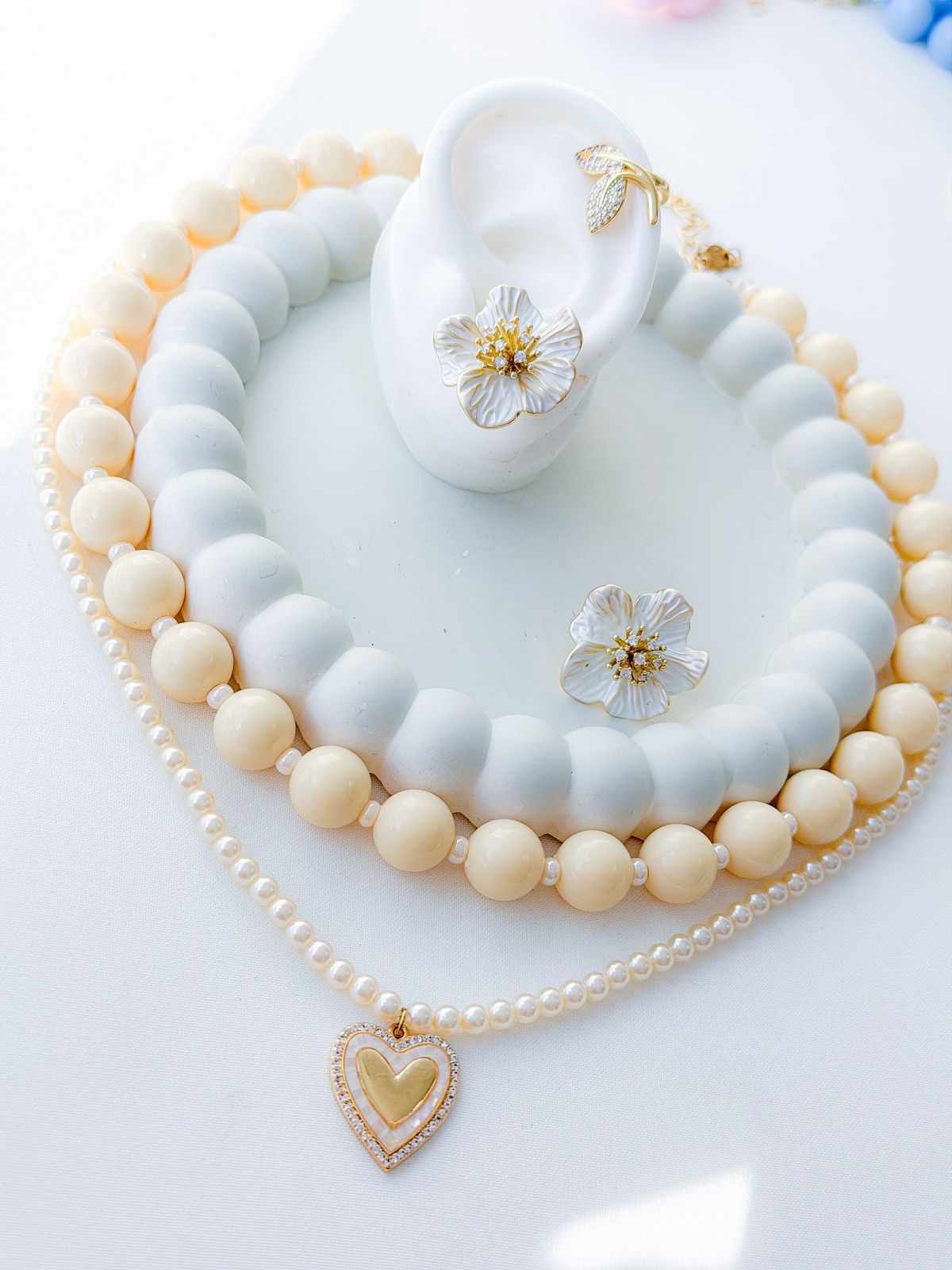 Fabricado en cobre con baño de oro, esmaltado y perla.